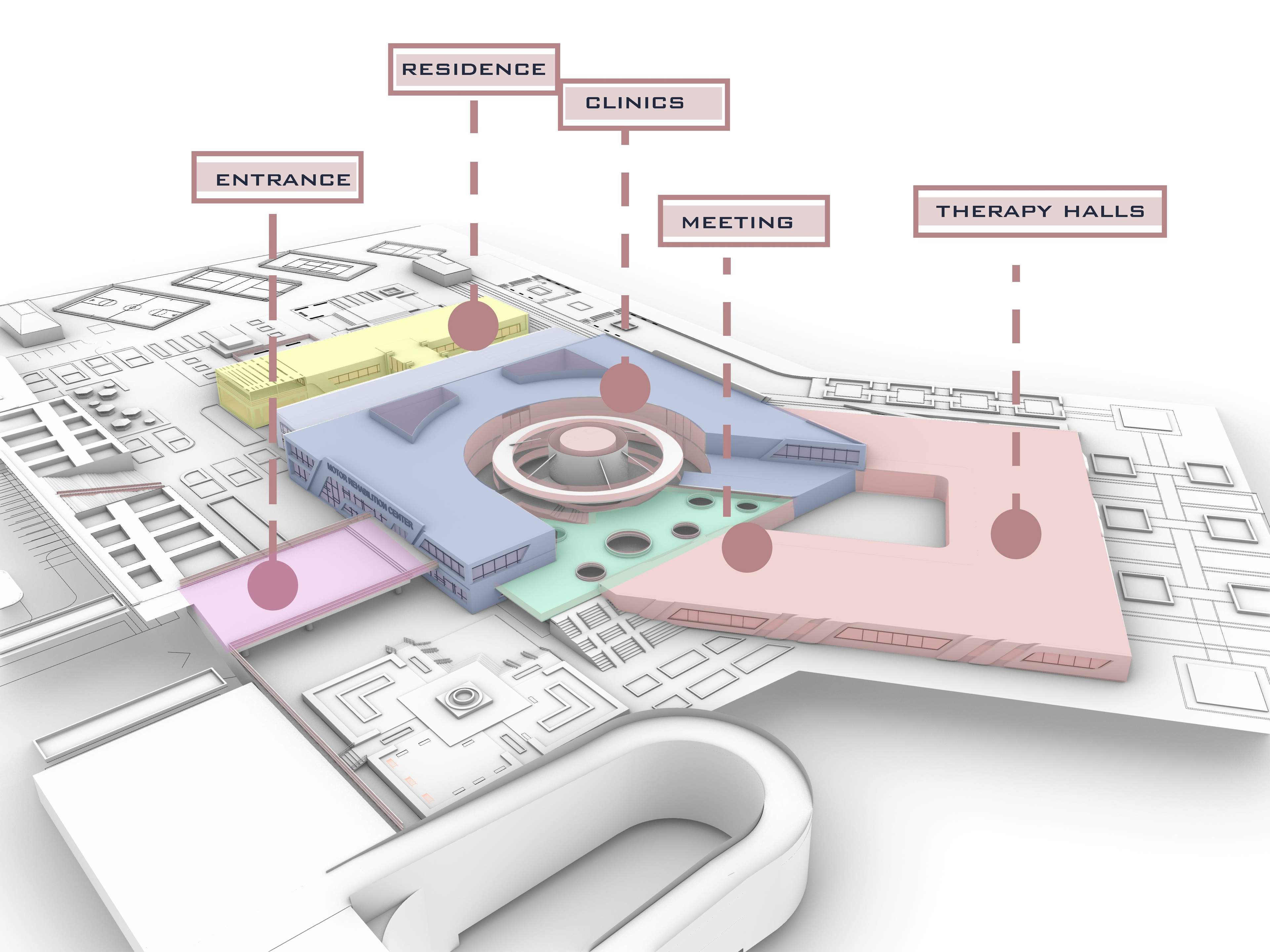 Motor rahabilitation centre aims to reduce the suffering associated with motor disabilities at all levels. To achieve this, a unique building has been designed specifically for the field of motor rehabilitation, focusing on reintegrating individuals with disabilities into society and providing them with support. The project will work on creating necessary spaces and areas with the latest designs within a sustainable natural environment, while optimizing the use of energy resources.